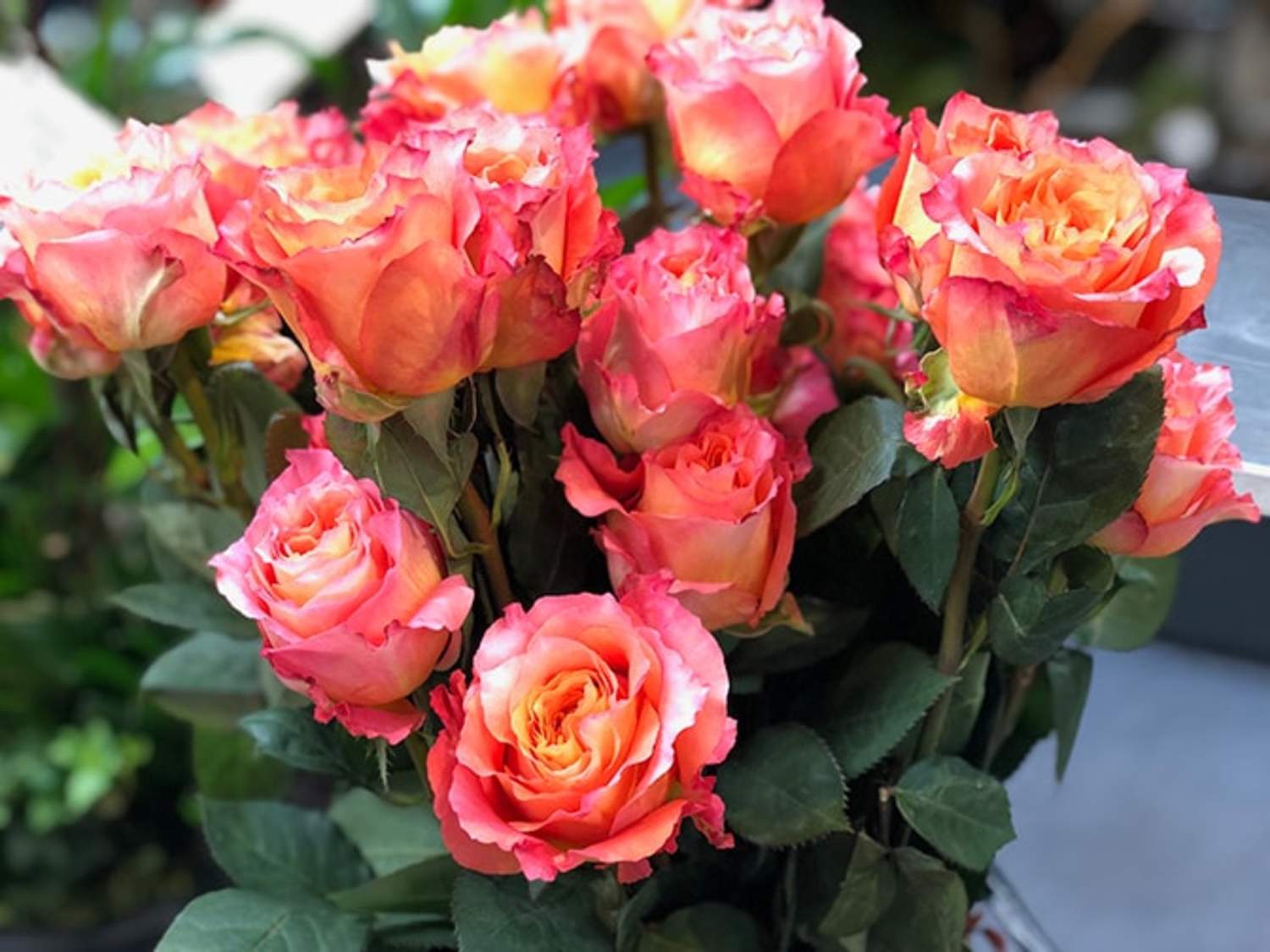 Have your vase or container ready and filled with your preservative solution. If you are using floral foam, saturate it in the solution before placing it in the container. Give the rose stems a fresh diagonal cut and remove all leaves that will be beneath the water level. To cut the stem, hold it under water in a sink or under running water (to prevent premature wilting) and cut about an inch off the end with a sharp knife or shears. Place the stem immediately into your vase or container. Place your arrangement in a cool location, keeping it out of direct sunlight and drafts and away from heat sources. Check the vase or container daily to see that it is full of water. Add your preservative solution whenever the water level has gone down.